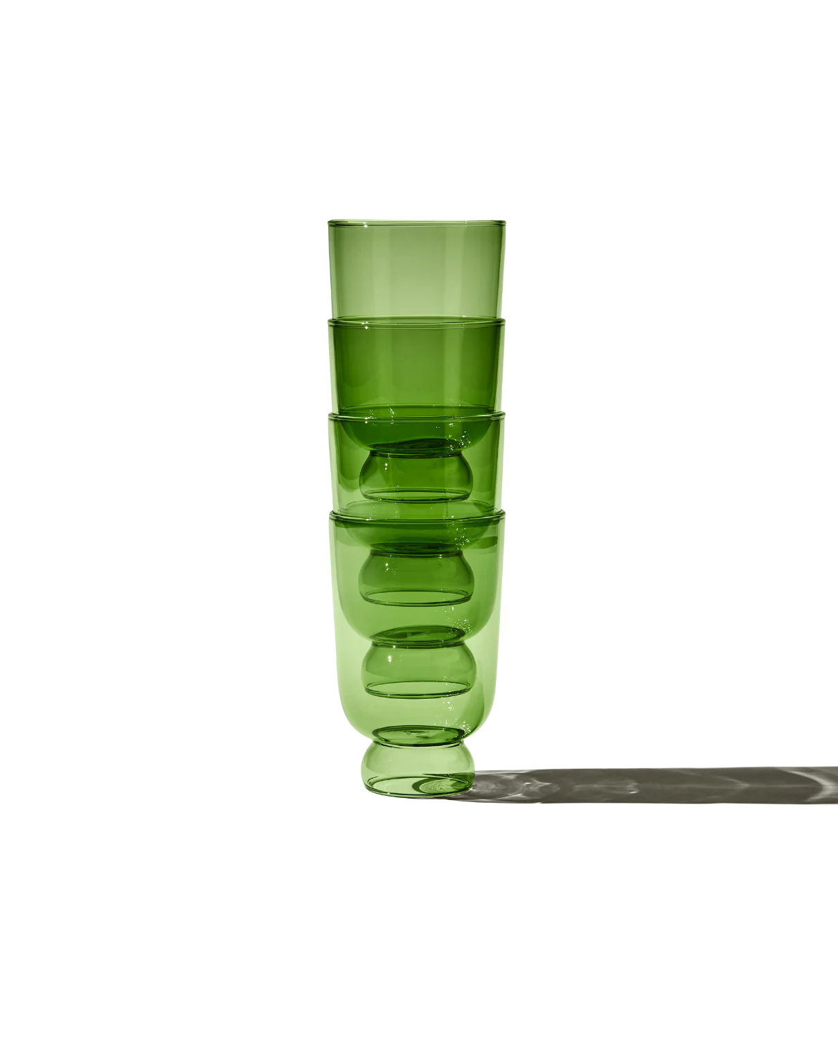 Set of 4. A foot above the rest, this unique cup beautifully holds water, wine, and cocktails. Made from ultra-thin (and ultra-strong) borosilicate glass, it's stackable, dishwasher-safe, resistant to thermal shock and made for everyday use.