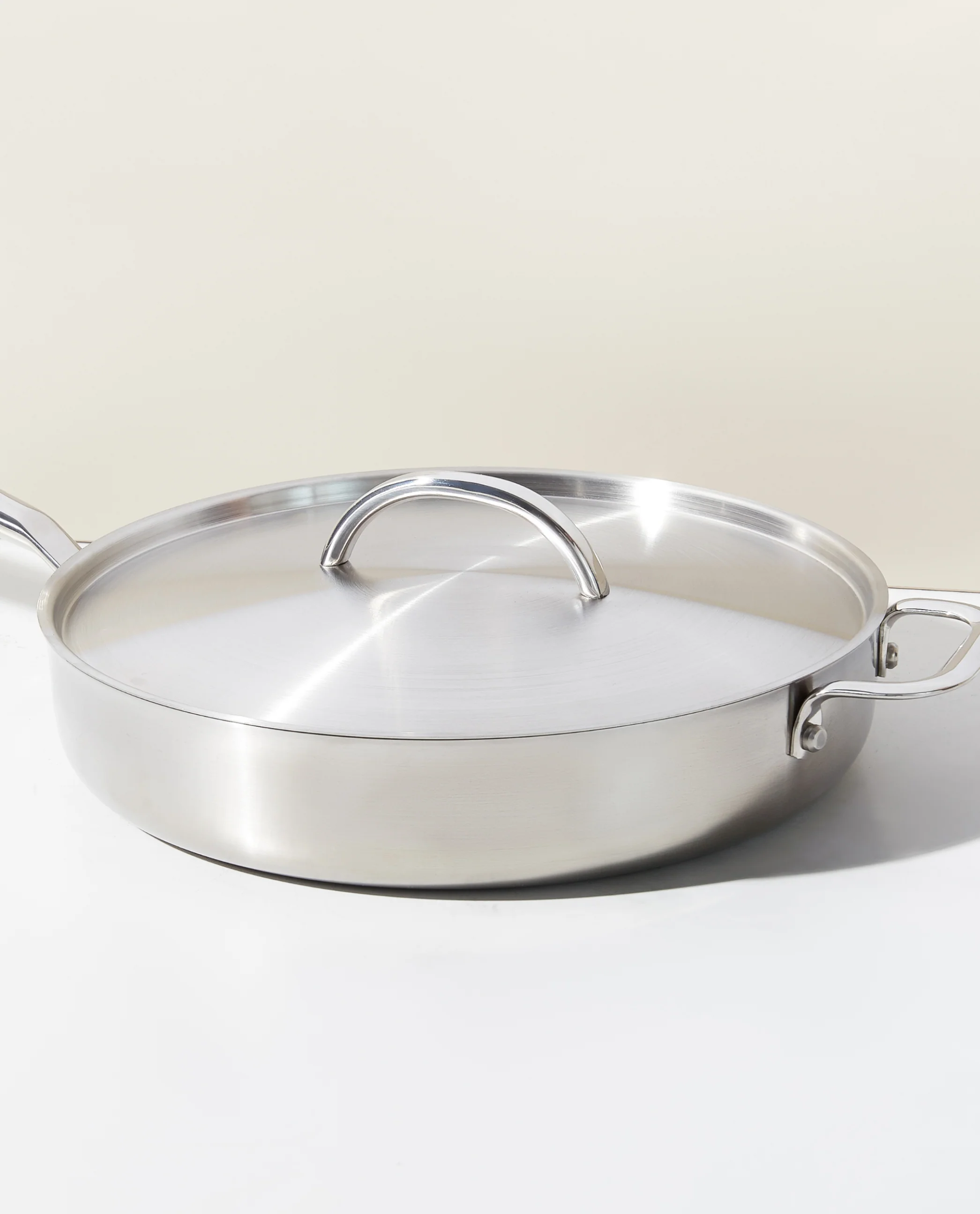 As featured in Fast Company and Vogue. Minimize mess, maximize flavor. The tall walls on our 10.5” sauté pan safely contain your stews and sauces. Plus, it’s got our signature copper core for rapid, even heating and the perfect sear, every time and for years to come.