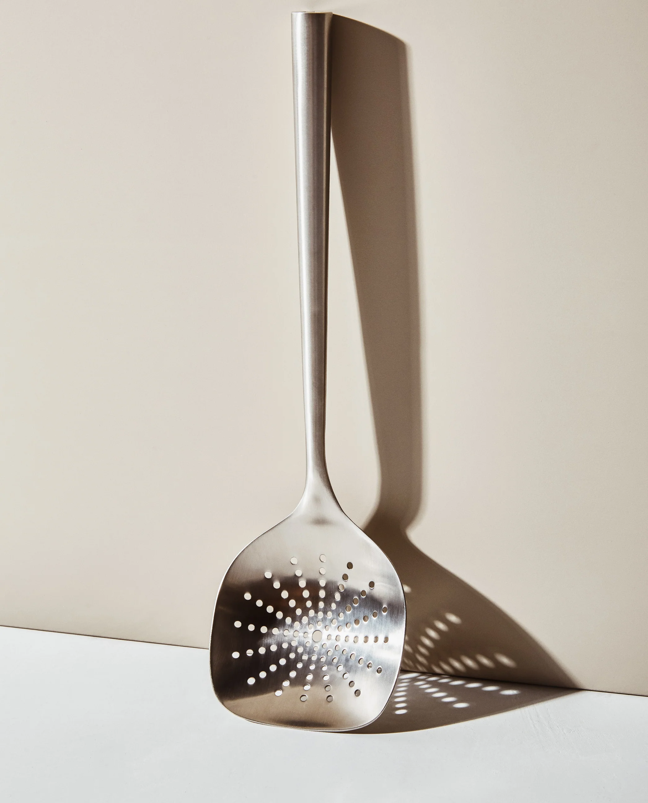 Inspired by the Asian“spider” strainer, The Slotted Spoon is practically a handheld colander, with its almost-oversized wide-mouth and flat-edge, which allow for guiding abundant scoops up the side of a pot, so you can grab every last noodle.
